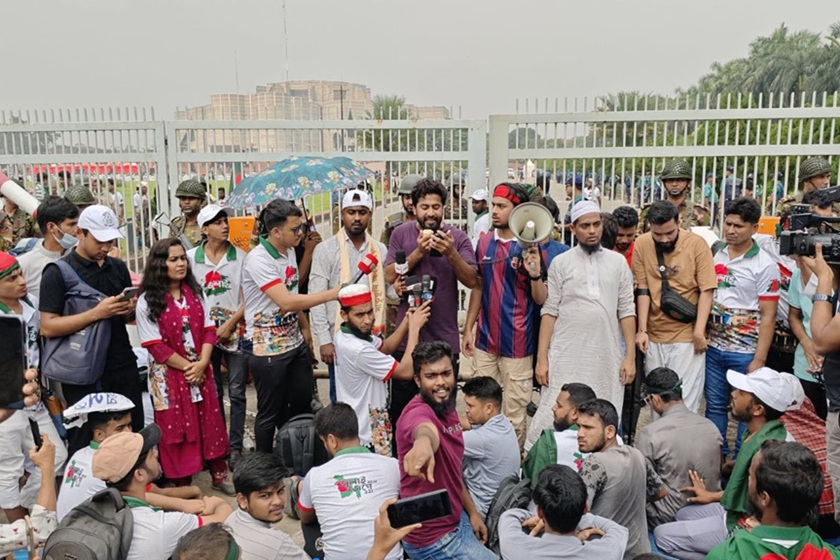 জুলাই সনদ স্বাক্ষর অনুষ্ঠানের মঞ্চের সামনে ‘জুলাই যোদ্ধা’দের অবস্থান